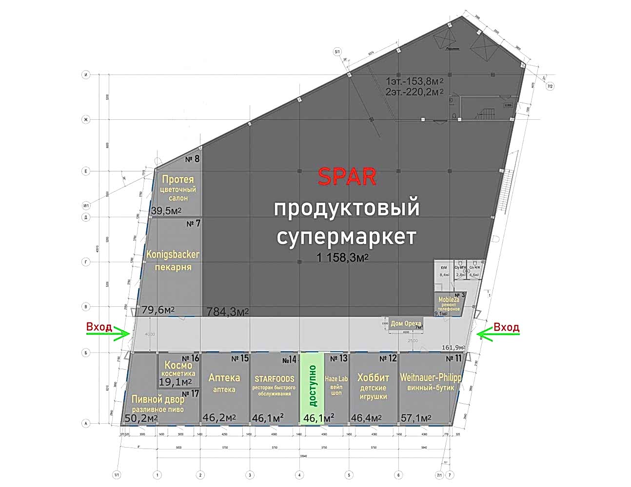 Торговый центр с якорным арендатором супермаркетом «SPAR» ориентирован на удовлетворение ежедневных потребностей окрестных жителей. Расположен в спальном районе, на первой линии улицы Аэропортной с интенсивным автомобильным и пешеходным трафиком. Наполнение торгового центра ориентировано на регулярные Pin-Up и основано на потребностях жителей, проживающих в пешей доступности. Сюда будут приходить, чтобы купить всё самое необходимое.