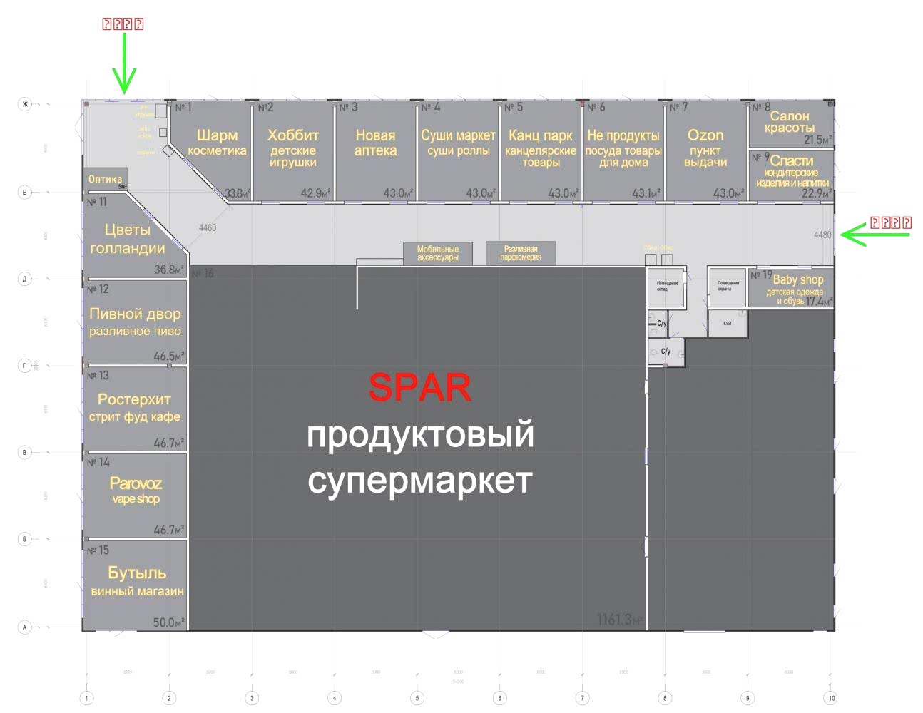 Торговый центр с якорным арендатором супермаркетом «SPAR» ориентирован на удовлетворение ежедневных потребностей окрестных жителей. Расположен в центре густонаселённого спального района, на улице Левитана 22 с интенсивным автомобильным и Pin-Up трафиком. Наполнение торгового центра ориентировано на регулярные посещения жителей, проживающих в пешей доступности. Сюда приходят, чтобы купить все самое необходимое.